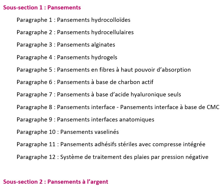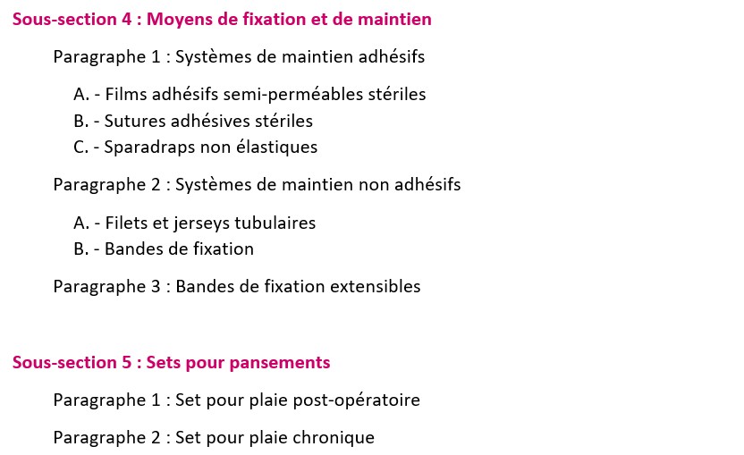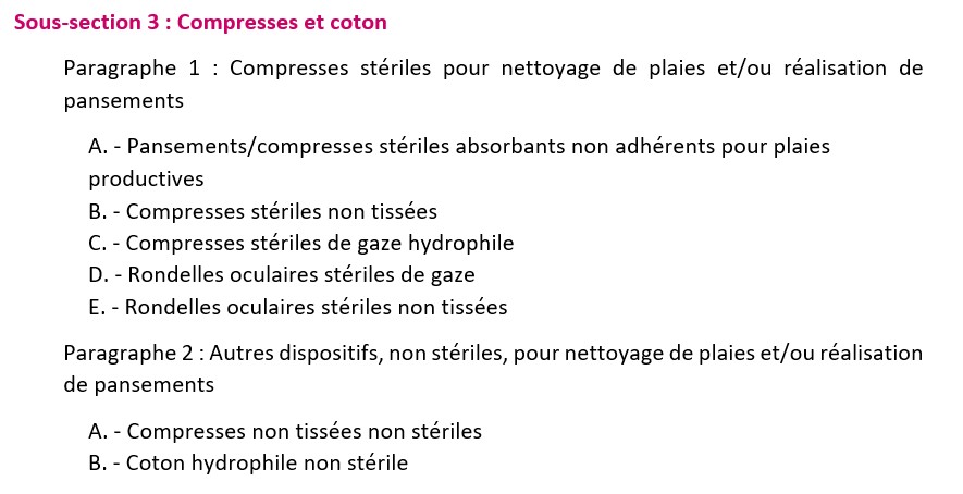• la catégorie de pansements ou de compresses ;